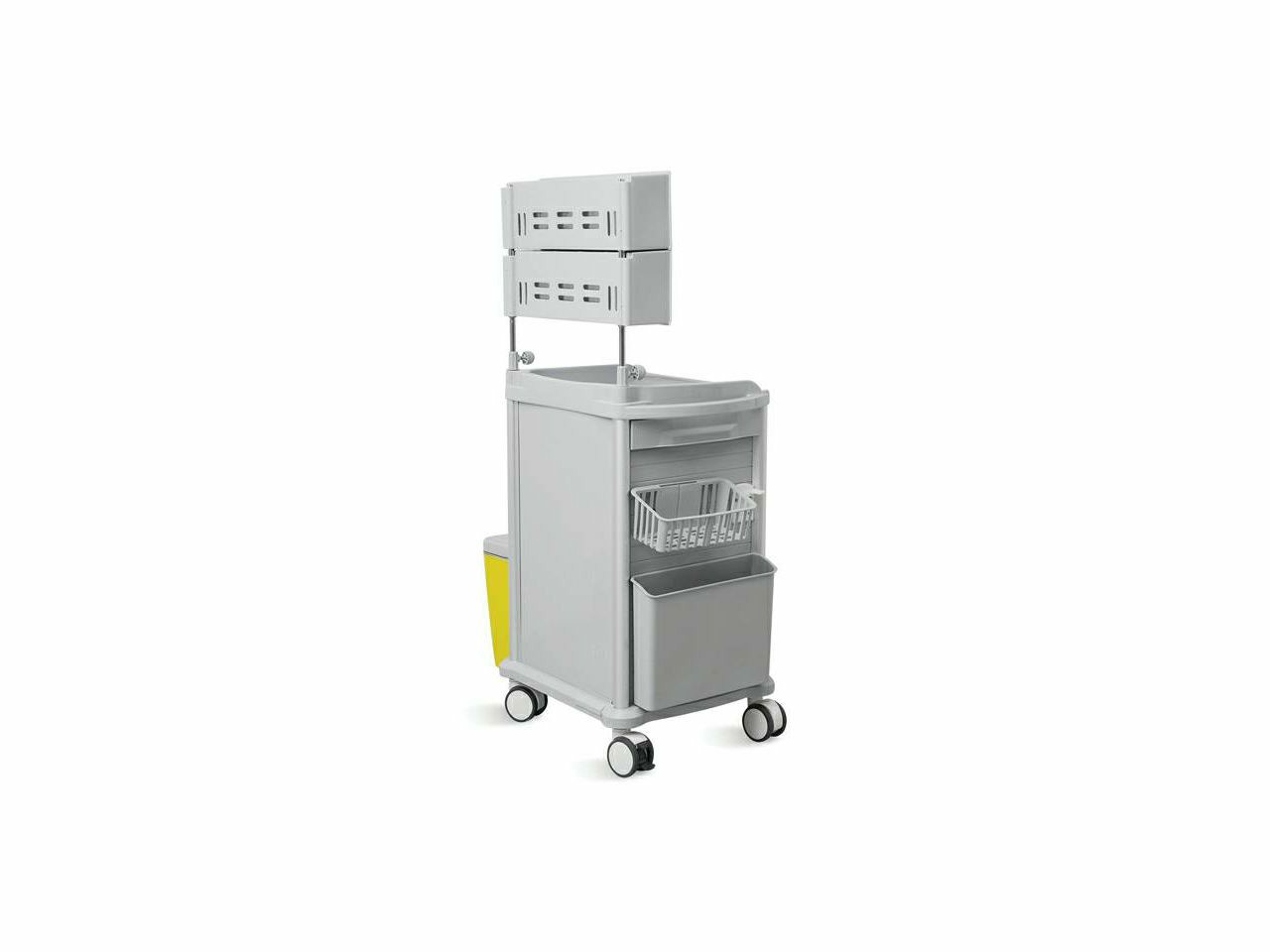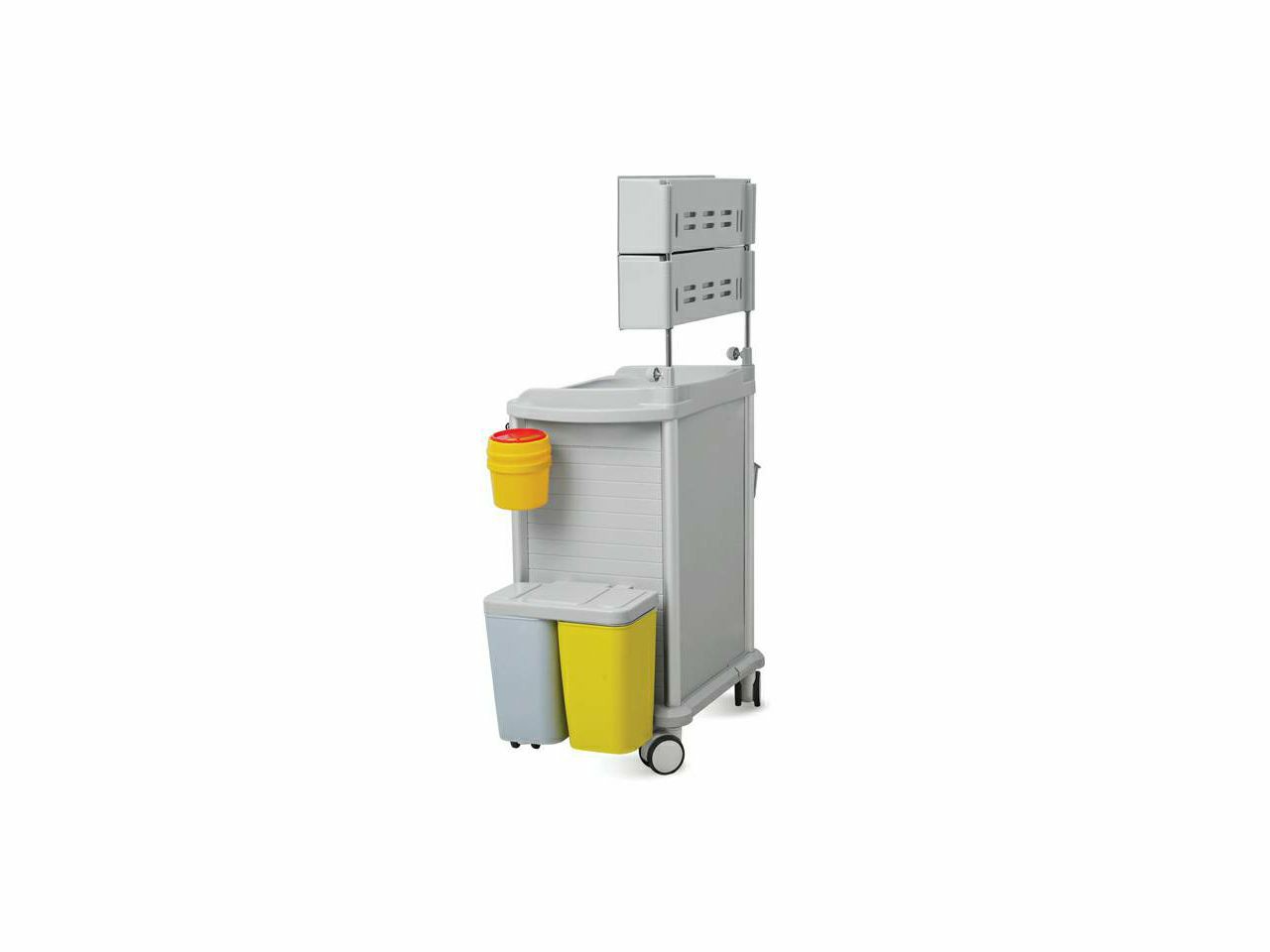 Kolica za zdravstvene ustanove i ustanove za njegu, pogodna za ordinacije ali i za operacionu salu. Proizvedena od posebno obrađene ABS plastike otporne na sredstva za dezinfekciju i pogodne za sterilizaciju u autoklavu. Kolica su modularna, na velik