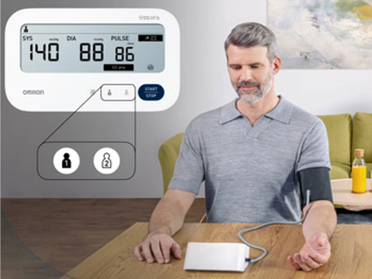 Uređaj prati hipertenziju kod kuće te automatski ažurira i prenosi rezultate na pametni telefon putem Bluetootha u OMRON aplikaciju.