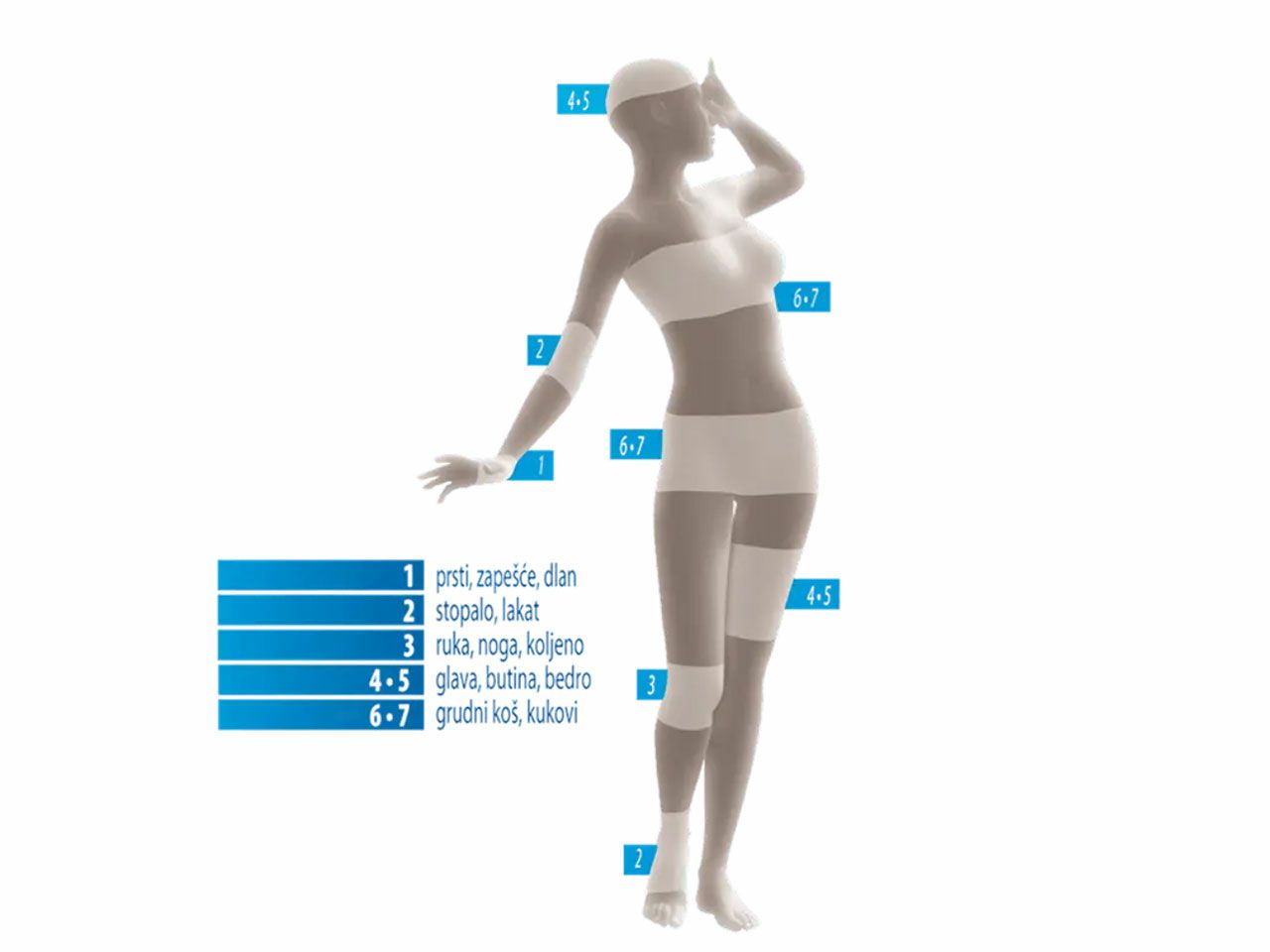 Koristi se za fiksiranje obloga za rane po njihovoj cijeloj površini kod tehnički zahtjevnih dijelova tijela, primjerice na zglobovima i na vratu.