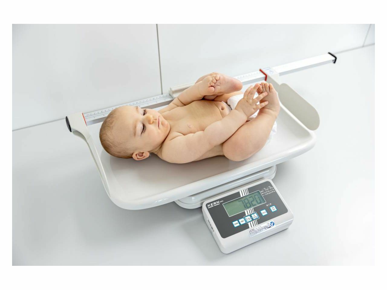 Elegantno oblikovana vaga za bebe s odobrenjem za profesionalnu mobilnu ili stacionarnu medicinsku uporabu u dijagnostici, uz mogućnost ovjeravanja (verifikacije).